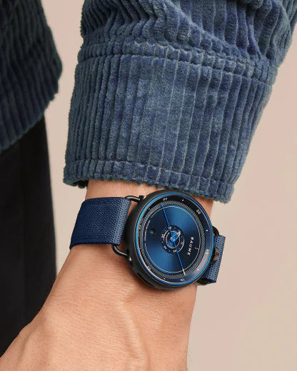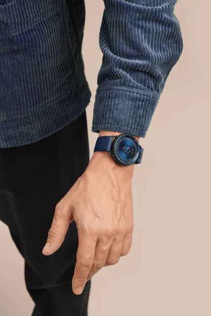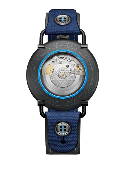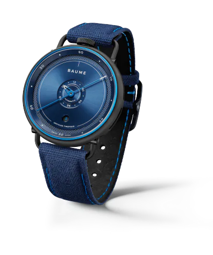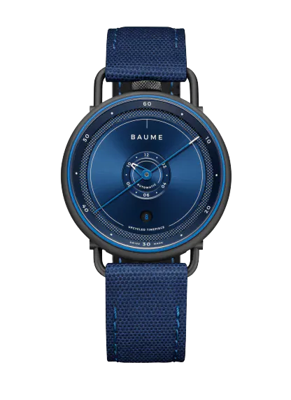 Juwelier Lun offizieller Baume & Mercier Retailer in München Die BAUME OCEAN II ist eine blaue 42-mm-Automatikuhr, die aus upgecyceltem Plastik gefertigt ist, das von der NGO Waste Free Oceans aus den Meeren gesammelt wurde. Ihr austauschbares Armband besteht aus gewebtem RPET, dem sogenannten "Seaqual Yarn", und ist mit schwarzem Naturkork ausgekleidet.