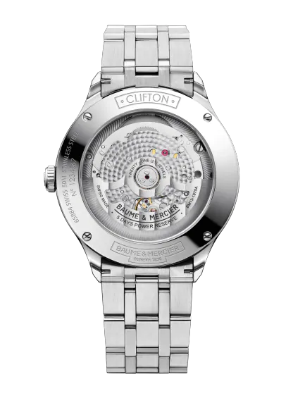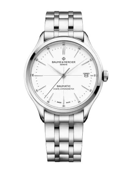 Die Clifton Baumatic 10505 ist eine ansprechende Uhr, die dank ihrer COSC-Chronometer-Zertifizierung höchste Präzision garantiert. Das polierte Stahlgehäuse verleiht der Uhr einen lässigen Look, während das Zifferblatt in weiß mit einer gewissen Tiefe und Eleganz strahlt. Das 5-gliedrige Stahlband ist austauschbar und bietet dadurch eine große Auswahl an stilistischen Möglichkeiten. Die COSC-zertifizierte Armbanduhr wird vom eigenen Baumatic-Kaliber angetrieben und verfügt über ein weiß lackiertes Zifferblatt mit einem Fadenkreuz in der Mitte. Die Zeiger und Indizes sind rhodiniert und tragen zum klassischen Look dieser Schweizer Uhr bei. Darüber hinaus verfügt sie über eine Datumsöffnung bei 3 Uhr, die das klassische Erscheinungsbild abrundet.