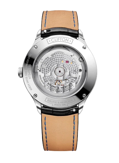 Die Clifton Baumatic ist eine ansprechende Uhr, die dank ihrer COSC-Chronometer-Zertifizierung höchste Präzision garantiert. Das polierte Stahlgehäuse verleiht der Uhr einen lässigen Look, während das Zifferblatt in schwarz mit einer eine gewisse Tiefe und Eleganz ausstrahlt. Das schwarze Lederarmband ist austauschbar und bietet dadurch eine große Auswahl an stilistischen Möglichkeiten. Die COSC-zertifizierte Armbanduhr wird vom eigenen Baumatic-Kaliber angetrieben und verfügt über ein schwarz lackiertes Zifferblatt. Die Zeiger und Indizes sind rhodiniert und tragen zum klassischen Look dieser Schweizer Uhr bei. Darüber hinaus verfügt sie über eine Datumsöffnung bei 3 Uhr, die das klassische Erscheinungsbild abrundet.