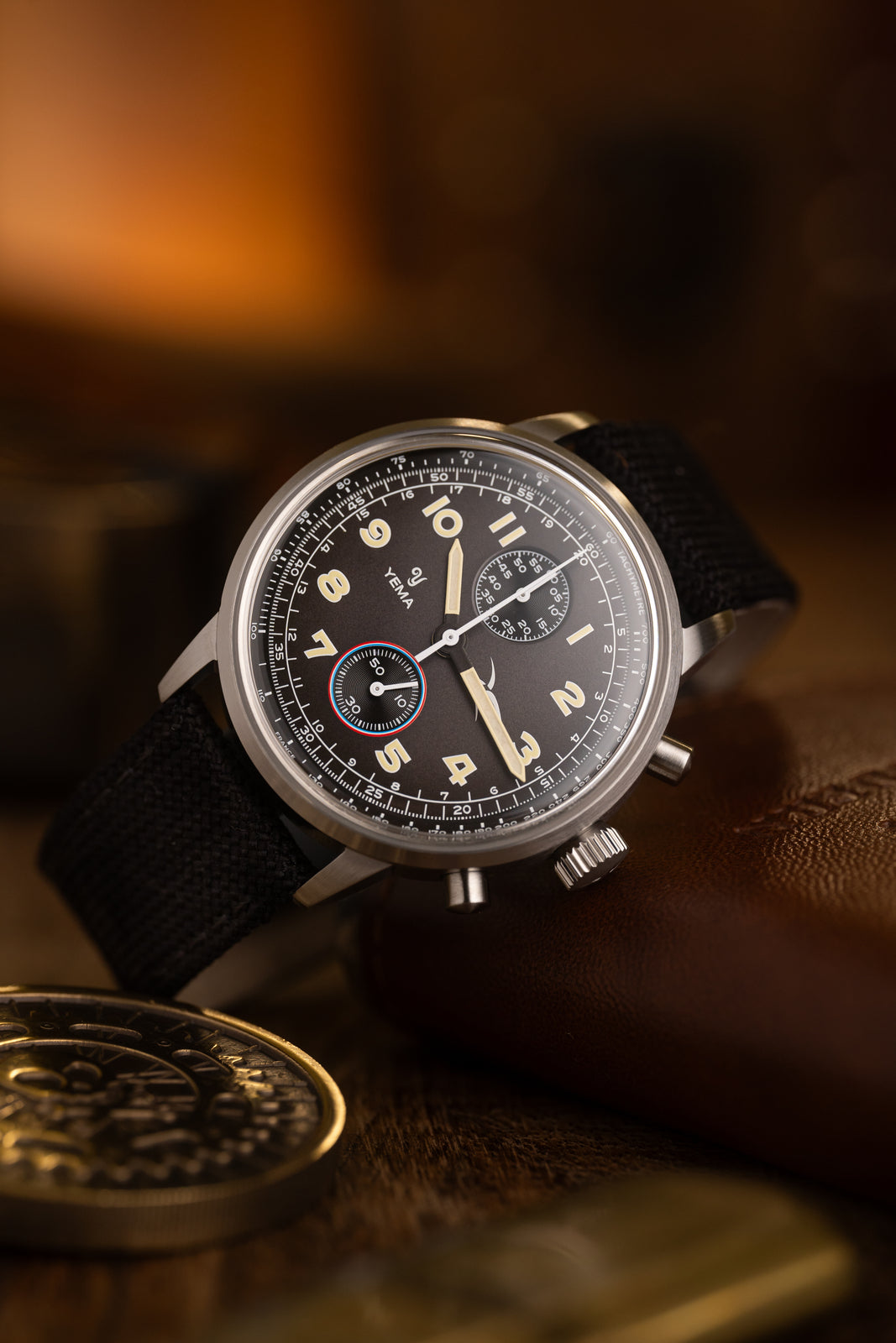 Der Yema Flygraf Bi-Compax French Air Force wurde in Zusammenarbeit mit der französischen Luftwaffe entwickelt. Ausgestattet mit dem Seiko VK61 Hybridkaliber, bietet dieser Chronograph eine perfekte Kombination aus Präzision und stilvollem Design. Das Zifferblatt trägt stolz das Emblem der französischen Luftwaffe.