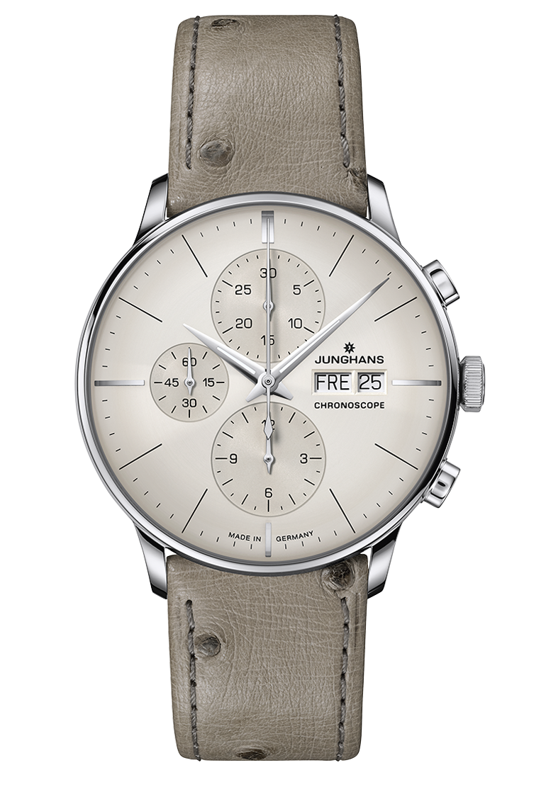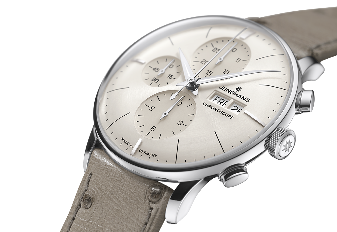 Soll es elegant oder dynamisch sein? Diese Entscheidung ist für die Meister Chronoscope nicht nötig. Die Uhr hat einen klassischen Look mit sportlichen Features. Die Meister Linie ist bekannt für ihre markanten und schalenförmigen Vertiefungen für die Hilfszifferblätter.