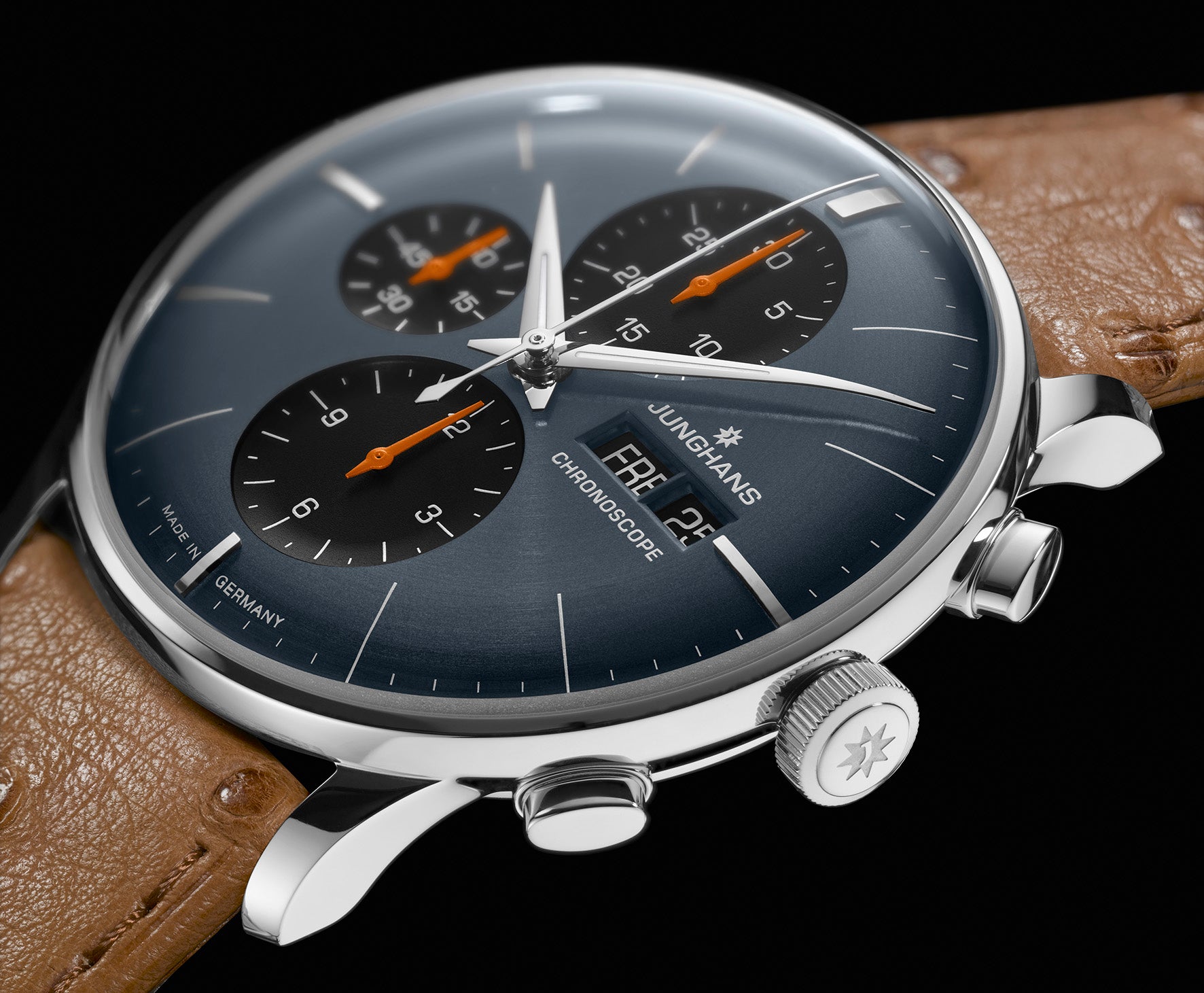 Soll es elegant oder dynamisch sein? Diese Entscheidung ist für die Meister Chronoscope nicht nötig. Die Uhr hat einen klassischen Look mit sportlichen Features. Die Meister Linie ist bekannt für ihre markanten und schalenförmigen Vertiefungen für die Hilfszifferblätter.