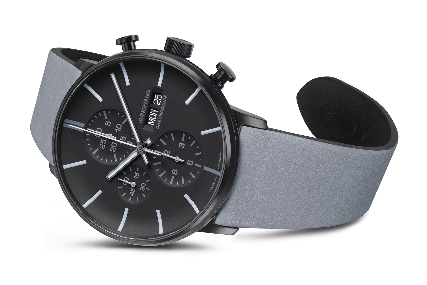 Klare Formen und auffällige Farbgestaltung kennzeichnen die FORM A Chronoscope. Die Kombination von matten und polierten Oberflächen in tiefem Schwarz erzeugt ein fesselndes Elan. Die Farbakzente in Gelb, Grau oder Orange sind von einem Kunstwerk des britischen Künstlers Richard Macneil inspiriert und als farblich angepasster Glashinterdruck auf der Gehäuserückseite zu finden. Der mechanische Chronograph ist mit einem flachen Saphirglas ausgestattet und bis zu 5 bar wasserdicht.