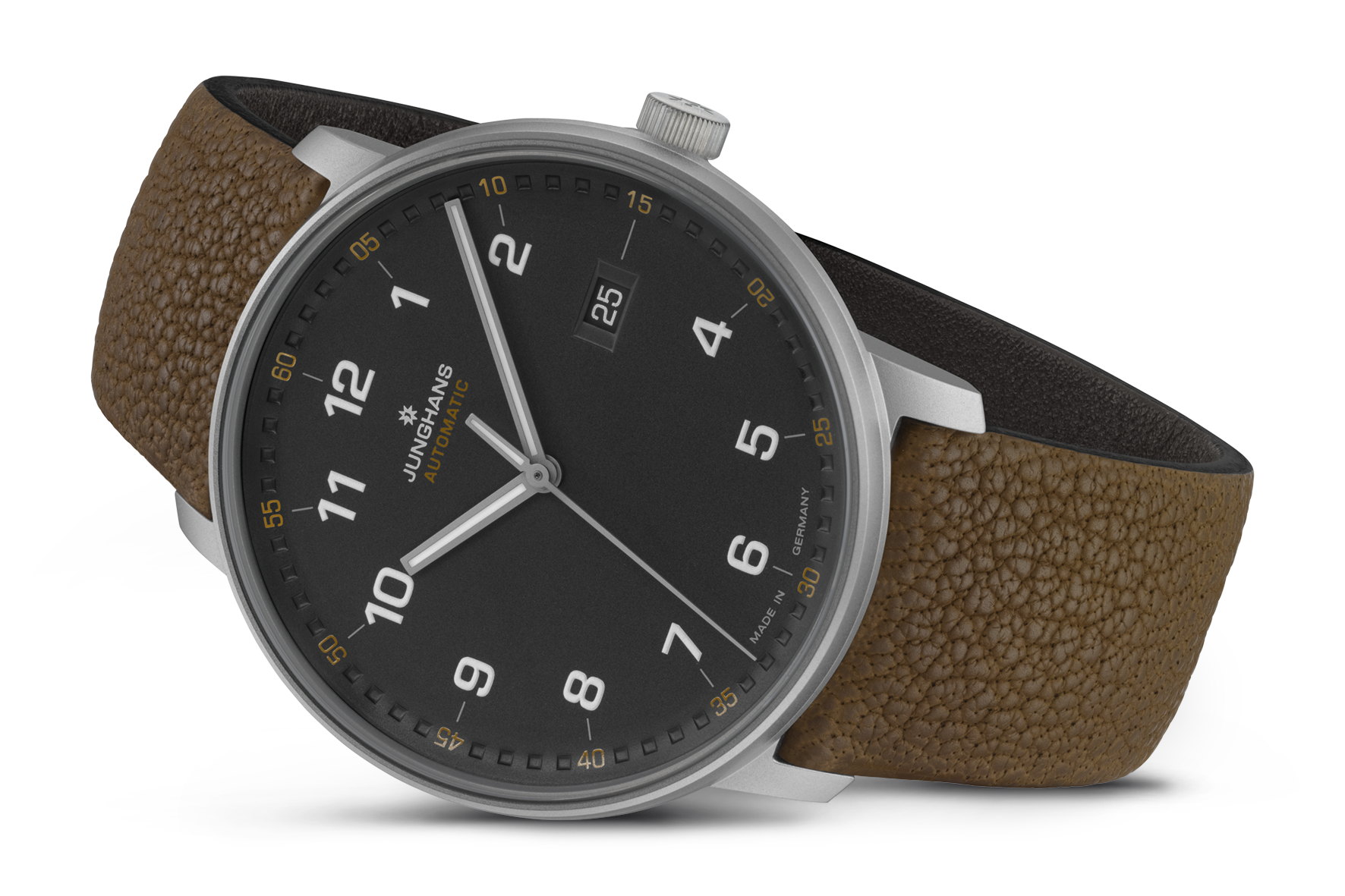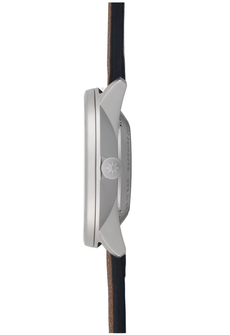 Aufgrund ihres etwas größeren Durchmessers von 40 mm ist die FORM A Titan das auffälligste Modell der Linie. Ihr betont sportlicher Charakter und die Wasserdichtigkeit bis 10 bar machen sie zu einem kraftvollen Begleiter für alle Aktivitäten. Gehäuse und Verschluss bestehen aus dem hautfreundlichen Material Titan.