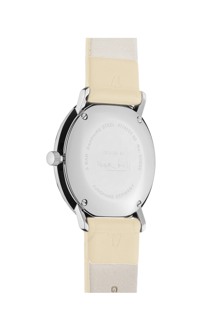 Nur für Frauen, frische Farben bringen schöne Akzente in das einfache Design. Dank Schnellverschluss lassen sich die Armbänder schnell und einfach austauschen. Das Damenmodell der Max Bill Linie zeigt, was Max Bill immer wichtig fand zum Beispiel die perfekte Verbindung von Nützlichkeit und Schönheit.