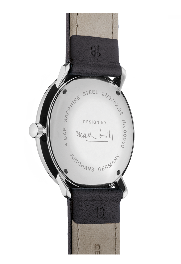 Im Jahr 1961 entwarf Max Bill zusammen mit Junghans eine Serie mechanischer Armbanduhren, die bis heute nahezu unverändert produziert wird. Dazu gehören das Zifferblatt mit extra dafür entworfenen, klar gerundeten Ziffern sowie das gewölbte Glas, das den Charme der Uhr unterstreicht.