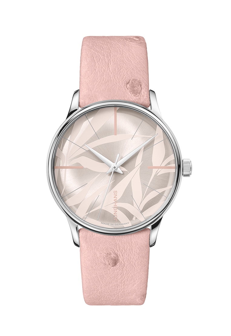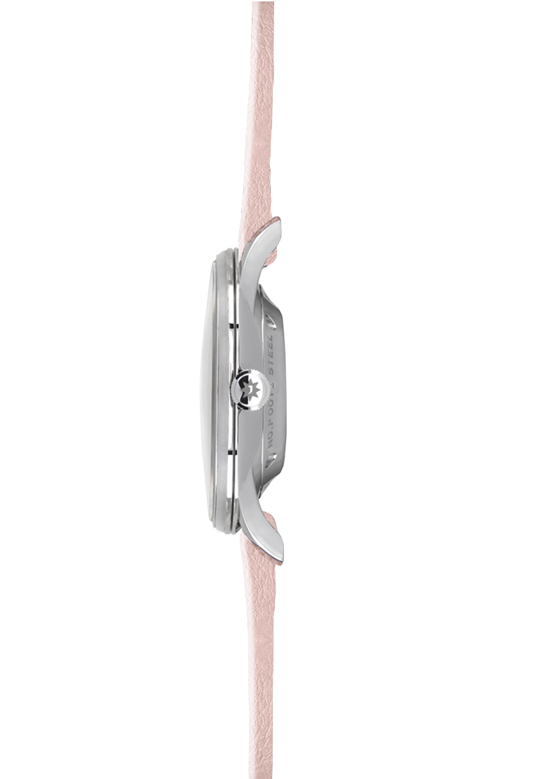 Die neue Meister Damen Automatic, die sofort beim ersten Blick fasziniert und auch bei genauerer Betrachtung beeindruckt. Das glanzpolierte Gehäuse verleiht der Uhr die sanft geschwungene Form. Die Uhrzeiger mit geschliffenen Kanten und die dezenten Stundenmarkierungen komplettieren das Erscheinungsbild.