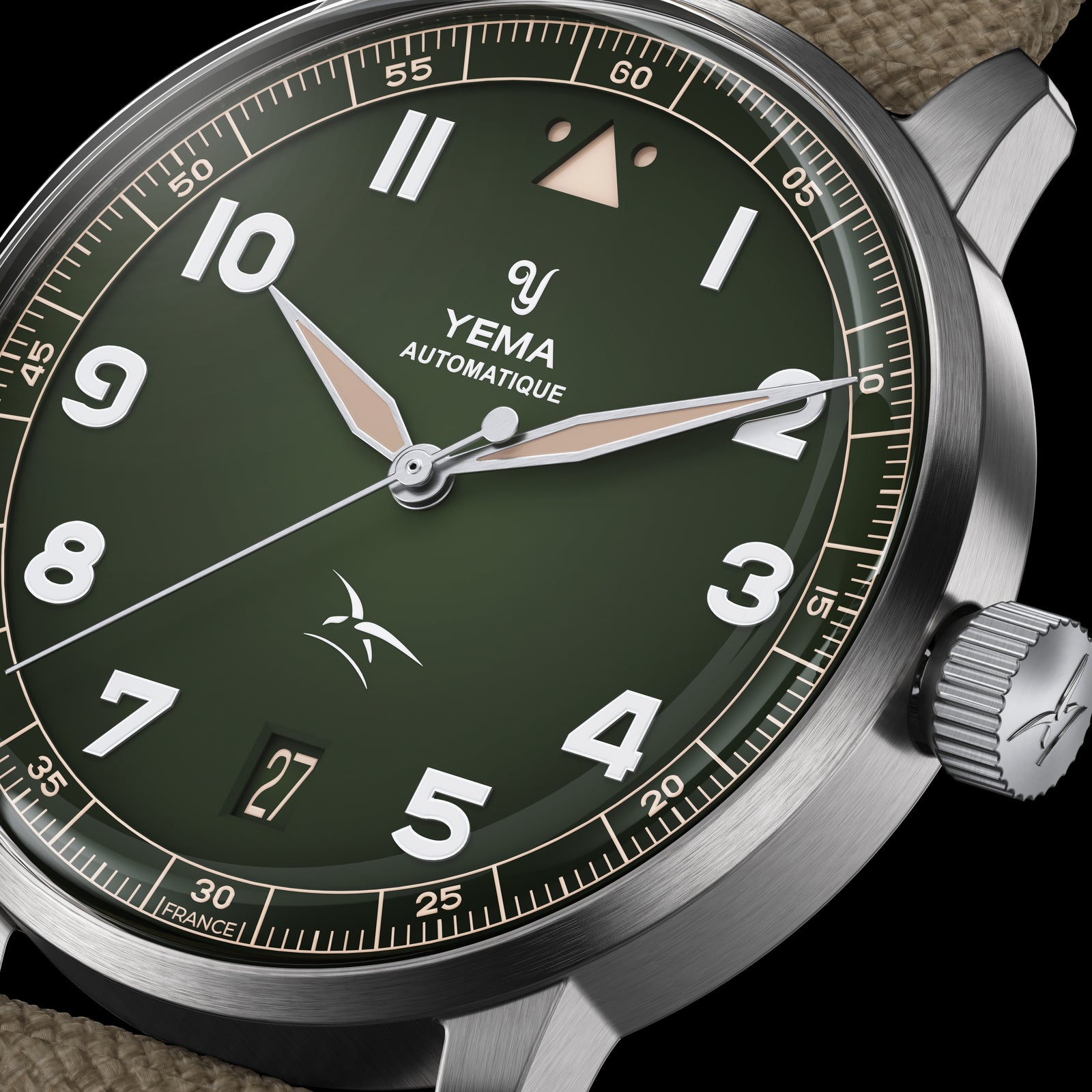 Der Yema Flygraf Flieger wurde in Zusammenarbeit mit den Französischen Luft- und Weltraumstreitkräften entwickelt. Diese moderne Interpretation der Typ-A-Fliegeruhr beeindruckt durch ihr robustes Titangehäuse und das präzise YEMA2000 Kaliber.