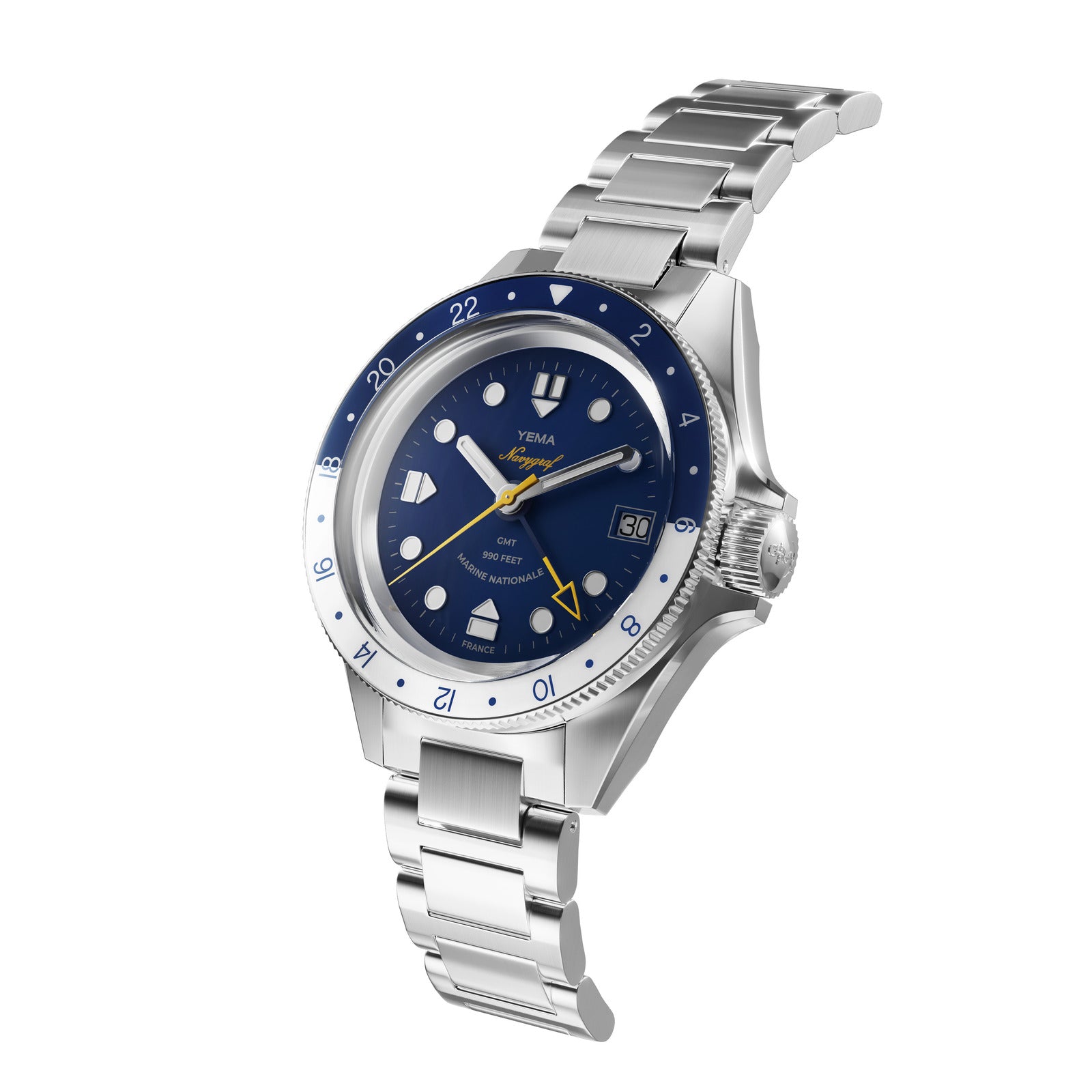 Erleben Sie Präzision und Vielseitigkeit mit der Yema Navygraf Marine Nationale GMT, entwickelt in Zusammenarbeit mit der französischen Marine.